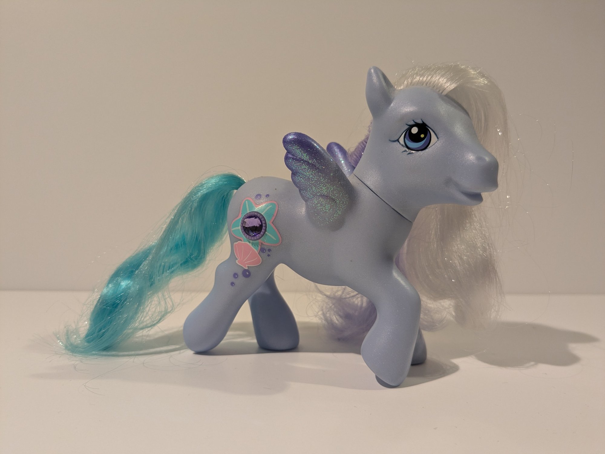 All My Little Ponies have been washed with soap and hot water and had their mane and tail conditioned. All ponies are fully dry before photographs are taken. Any more extensive restoration or cleaning will be detailed in the notes above.